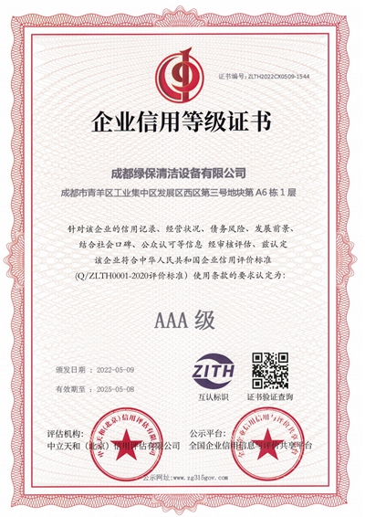 企業(yè)信用等級(jí)AAA證書